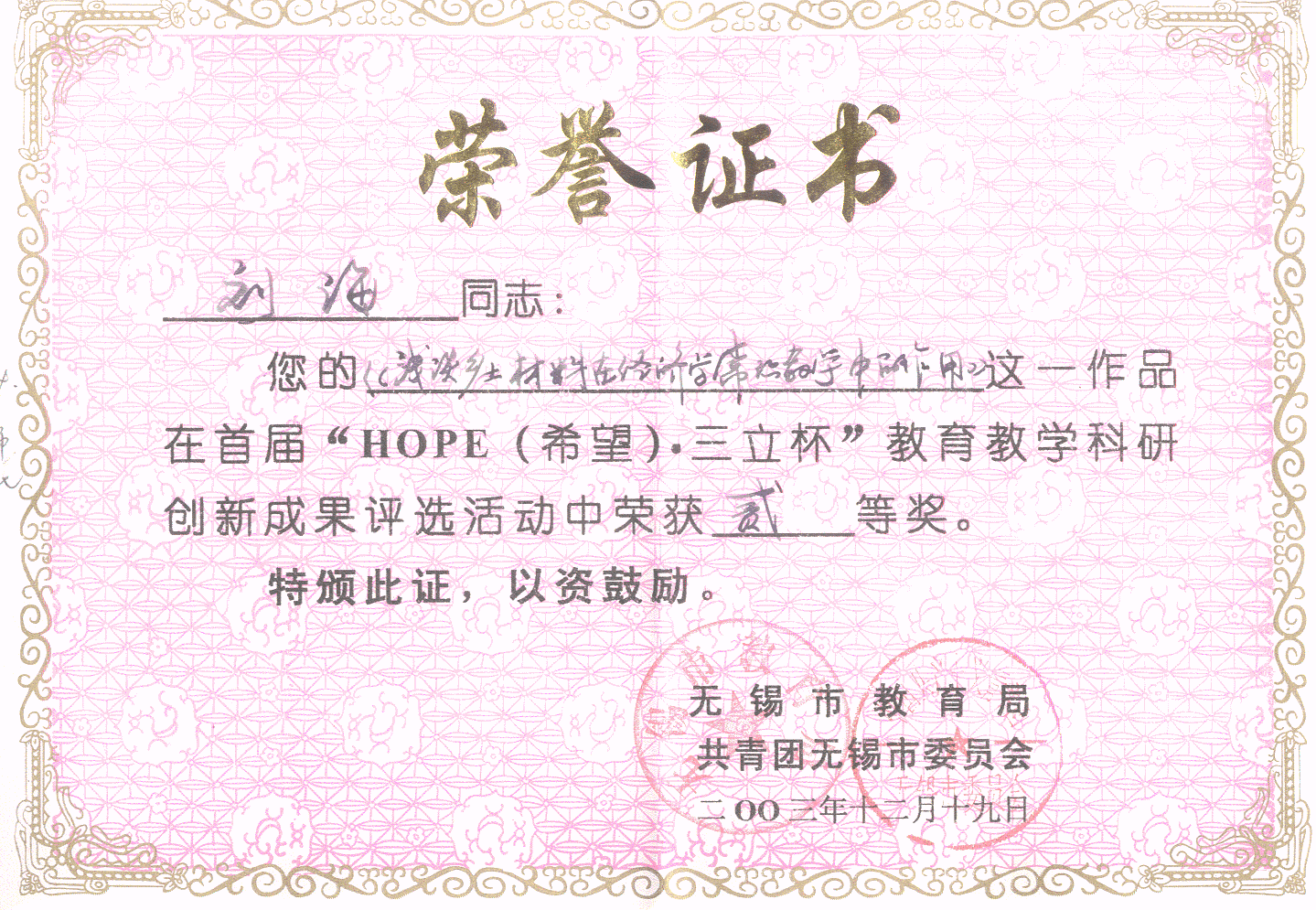 “江苏省刘海网络名师工作室”专题网站 主办者:刘海 江苏省无锡市市北高级中学
