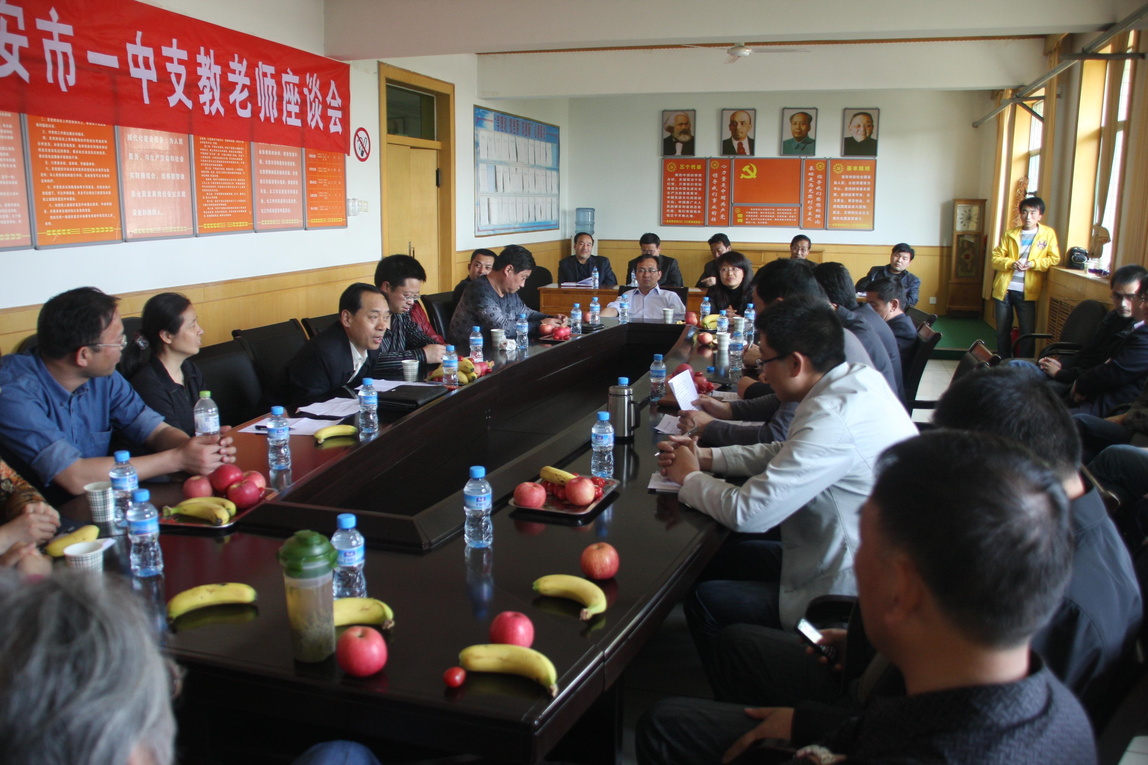 4月24日无锡教育代表团一行15人在无锡市教育局张志新副局长的带领下来到我校考察并慰问无锡支教老师。代表团成员首先看望和慰问了无锡支教老师,然后在三楼会议室与延安市教育局领导杨宏录副局长、人事科张克孝科长、支教办张晓娟主任及我校领导班子成员举行了座谈会。座谈会由杨宏录副局长主持。