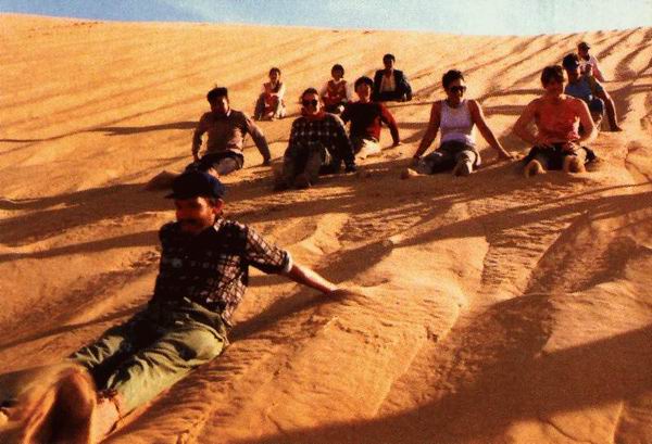 响沙湾在包头南,通过雄伟壮观的黄河大桥,进入库布齐沙漠(响沙湾为其一角),一年四季只要天气晴朗干燥从沙顶下滑便会产生“嗡嗡”似直升飞机马达的轰鸣声。若用双手刨沙,还会发生如同青蛙“哇哇”的叫声,独特奇妙,在响沙密林深处也称“沙漠绿洲”设立了接待站,配备有冲凉房和露天灯光舞场。