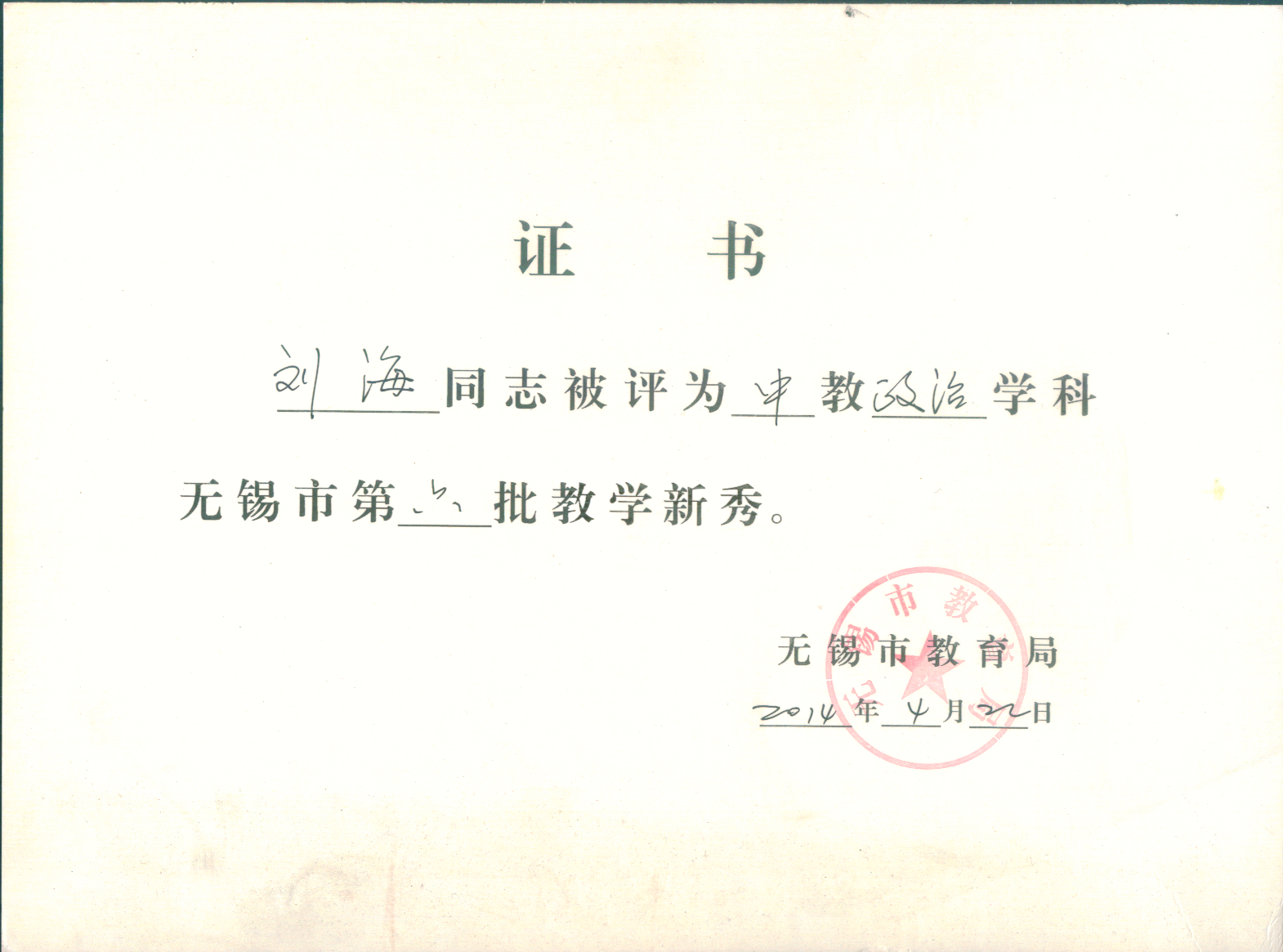 “江苏省刘海网络名师工作室”专题网站 主办者:刘海 江苏省无锡市市北高级中学