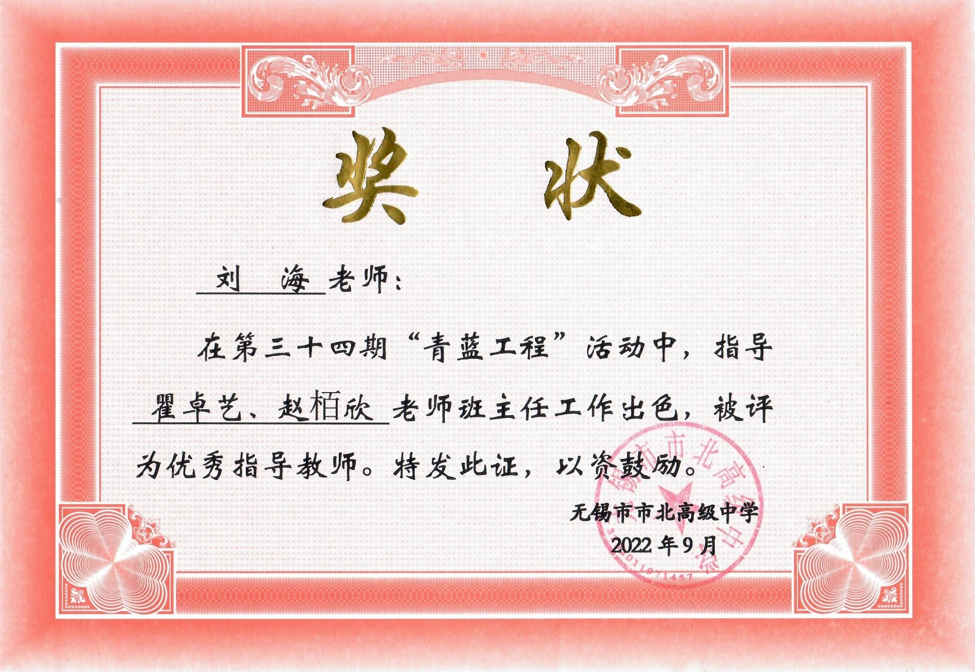 学校第三十四期“青蓝工程”优秀指导教师(班主任工作方面)