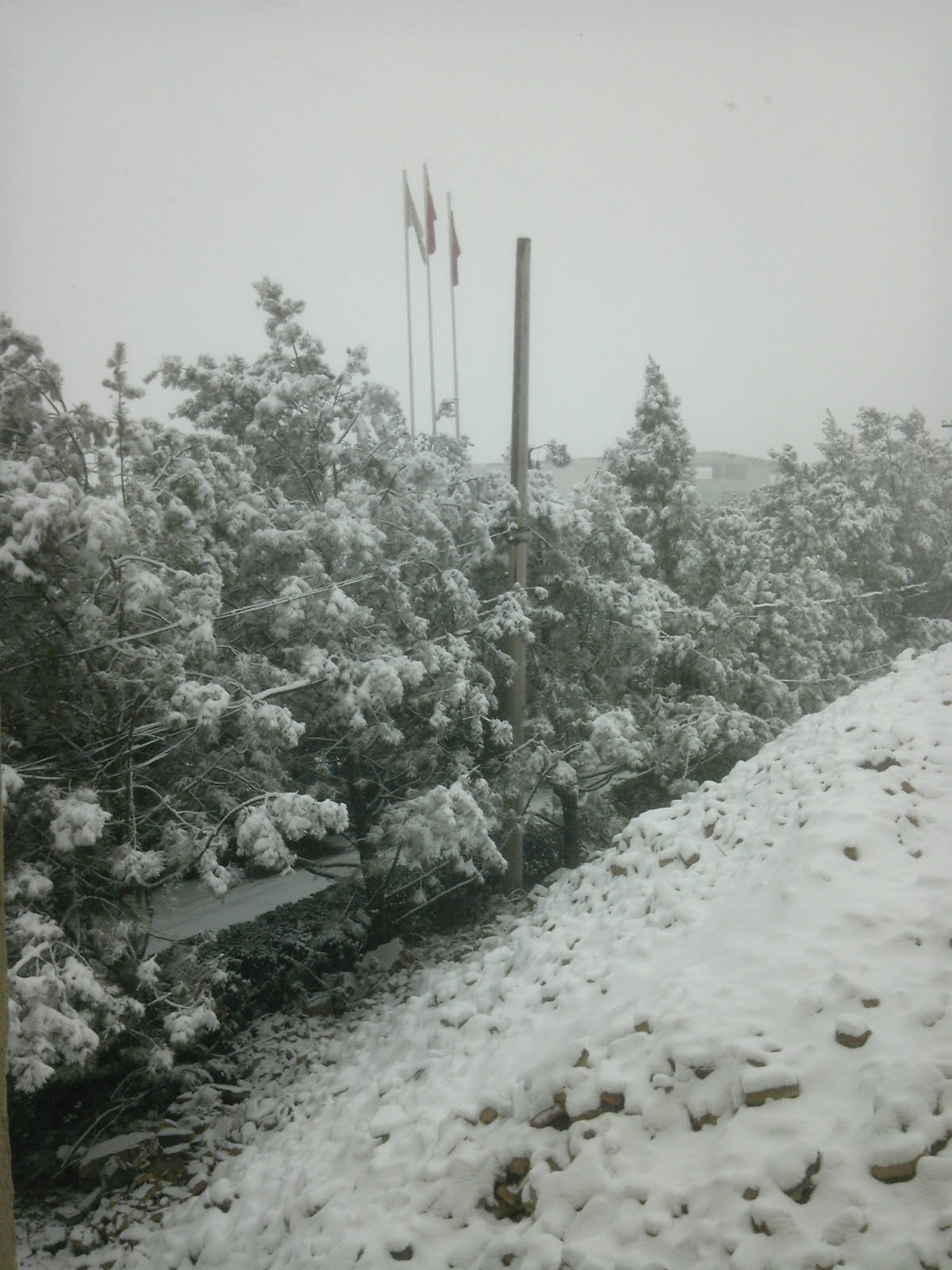 2011年2月26日中午时分开始就下起了鹅毛般的大雪,很快延安一中校园一片白茫茫的。积雪达到了近10CM。经过昨天的短暂停止后,今天再度下起小雪。给原来已经十分湿滑的路面再度增添了几分危险。今天早上七点多钟,校园里就热闹了起来,各班组织的扫雪队伍在积极的铲雪、除雪。